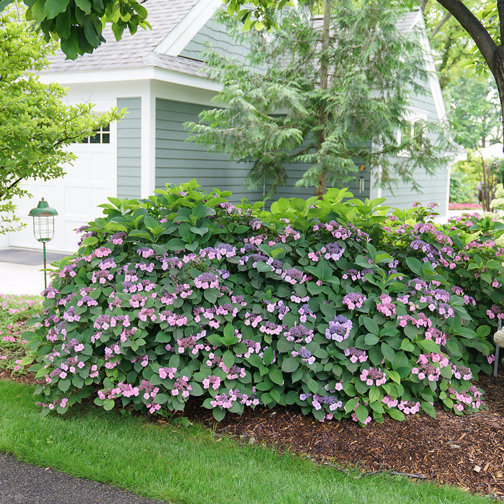 Maybe you've never heard of a mountain hydrangea (H. serrata), but you've almost certainly seen one - they are close cousins of the better-known bigleaf hydrangeas and have the same colorful flowers and similar-looking foliage. Mountain hydrangeas grow in the same areas of Japan as bigleaf hydrangeas, but instead of growing along they mild coast, they grow high in the chilly mountaintops. As a result, they have naturally developed better cold tolerance, particularly in their flower buds. This means that if bigleaf hydrangeas don't always bloom reliably for you, a mountain hydrangea might make a much better choice. Though most mountain hydrangeas have lacecap flowers, you'll still enjoy the fantastic blue, purple, or pink color and handsome glossy foliage you seek in bigleaf types.
